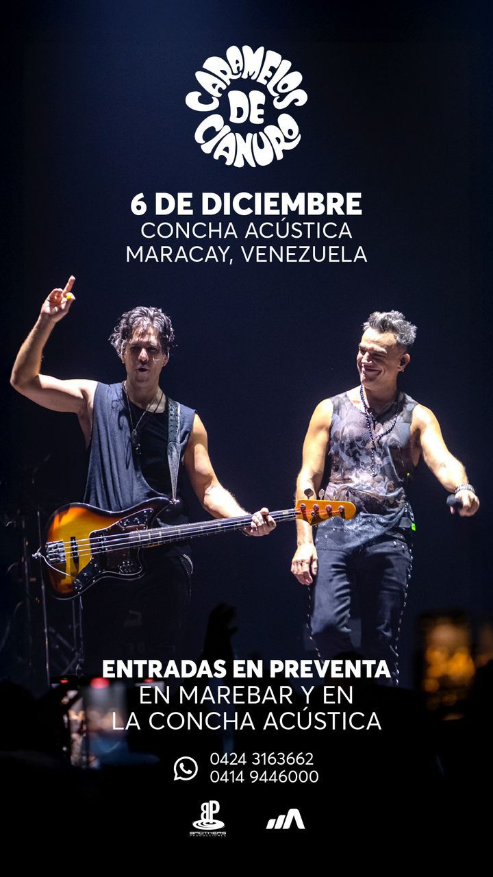 La Concha Acústica de Maracay será el epicentro de la música estas navidades y es que el 6 de Diciembre los icónicos Caramelos de Cianuro llevarán el rock a la ciudad jardín, mientras que el 20 de Diciembre el turno será para Ronald Borjas que plenará la Avenida Las Delicias con su ritmo. Ambos espectáculos bajo la producción de Aldo Music Latino y Brothers Producciones.