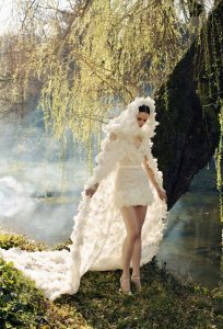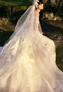 Ella es el corazón de la obra maestra, celestial mientras respira luz y palpita en su entorno, pero muy terrenal en su gentil gracia y aspecto etéreo. ELIE SAAB BRIDAL SPRING 2023 encarna esos fugaces momentos de trascendencia, inspirados en los ideales de la naturaleza, el encanto del pasado y las reflexiones de los prerrafaelitas para revivir intencionalmente un feroz romanticismo y una tierna feminidad.