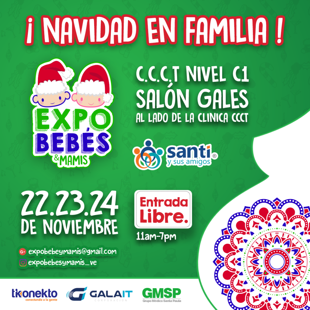 Una de las Expo ferias más esperadas, Expo Bebes & Mamis se apodera del Centro Comercial Ciudad Tamanaco, en su 3ra edición regresa a inaugurar la temporada navideña para el disfrute de toda la familia, del 22 al 24 de Noviembre en las instalaciones del Salón Gales, ubicado en el nivel C1 del CCCT, donde podrán encontrar emprendimientos, moda, gastronomía y un sinfín de propuestas de reconocidas marcas venezolanas. Este evento se realiza a beneficio de la Asociación Civil Santi y sus Amigos, quienes estarán realizando el lanzamiento del Programa: “Una navidad Como en Casa” una jornada de recolección de fondos y donaciones para los héroes de vida del Hospital de Niños Dr. J.M. de los Ríos.