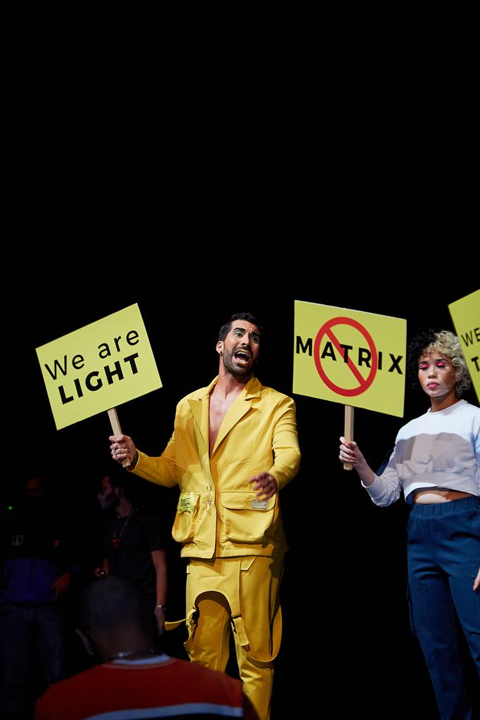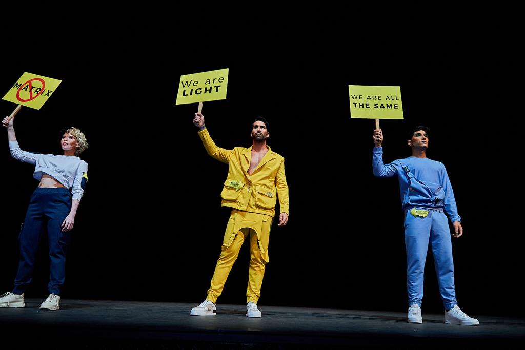“Es una colección que nace en tiempo de pandemias. Es una colección que me permitió renacer y regalarle a mi público esa libertad de movimiento”, expresó la diseñadora sobre esta colección que se dio a conocer con un desfile lleno de concientización al medio ambiente y a la sociedad a través de carteles que llevaron los modelos.