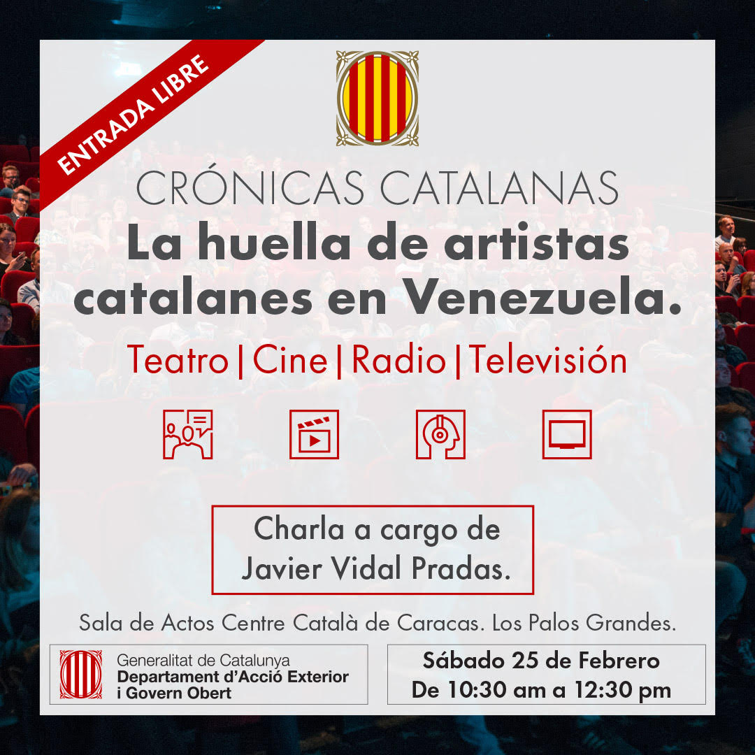 El Centre Català de Caracas continúa su ciclo de crónicas catalanas con una muy especial charla a cargo de Javier Vidal sobre la huella de artistas catalanes en el teatro, el cine, la radio y la televisión en Venezuela. Será este sábado 25 de febrero a las 10:30 a.m. y con entrada libre.