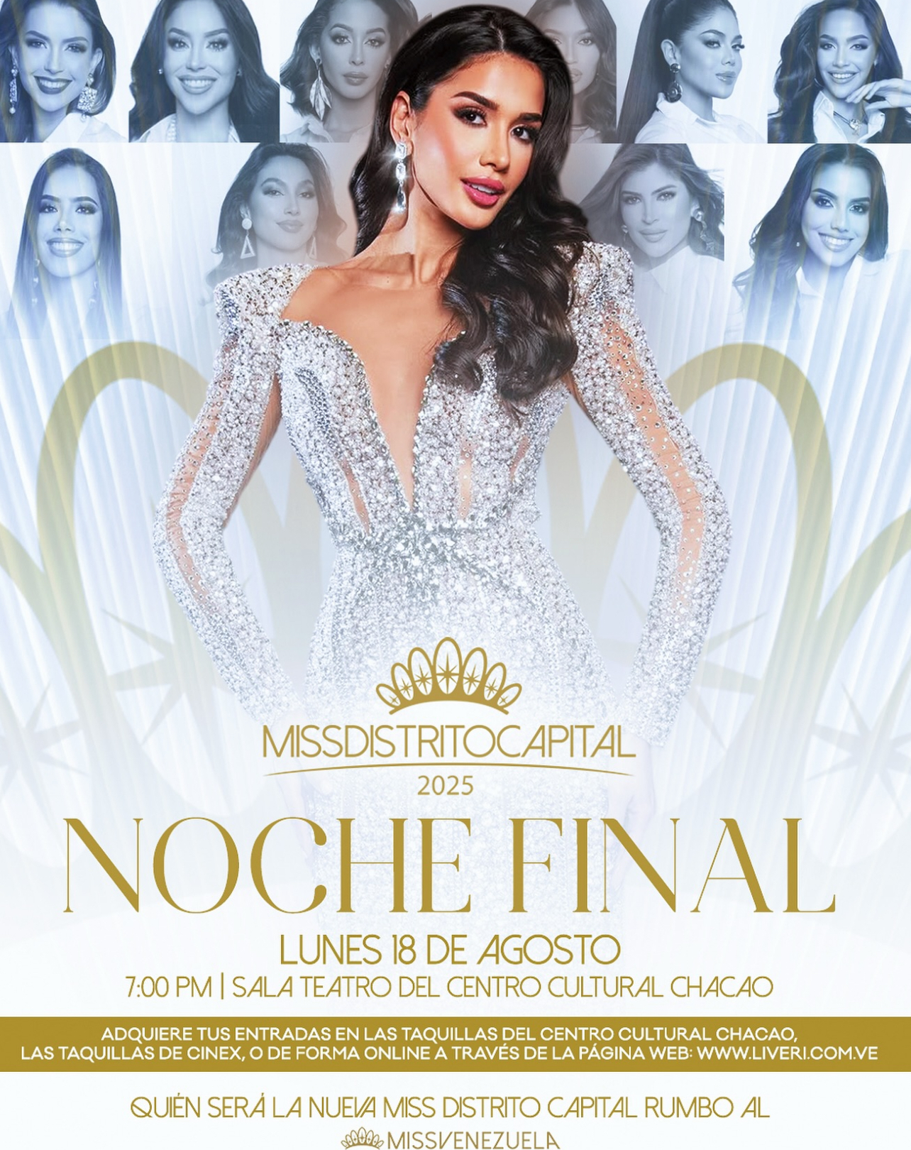 Este lunes 18 de agosto el glamour, la belleza, y el talento se unirán en las inmediaciones del Centro Cultural Chacao ubicado en la Avenida Tamanaco de la Urbanización El Rosal (Caracas) con un show impresionante que promete cautivar a todos los presentes; allí conoceremos quién será la sucesora de Vanessa Pérez (Miss Distrito Capital 2024).