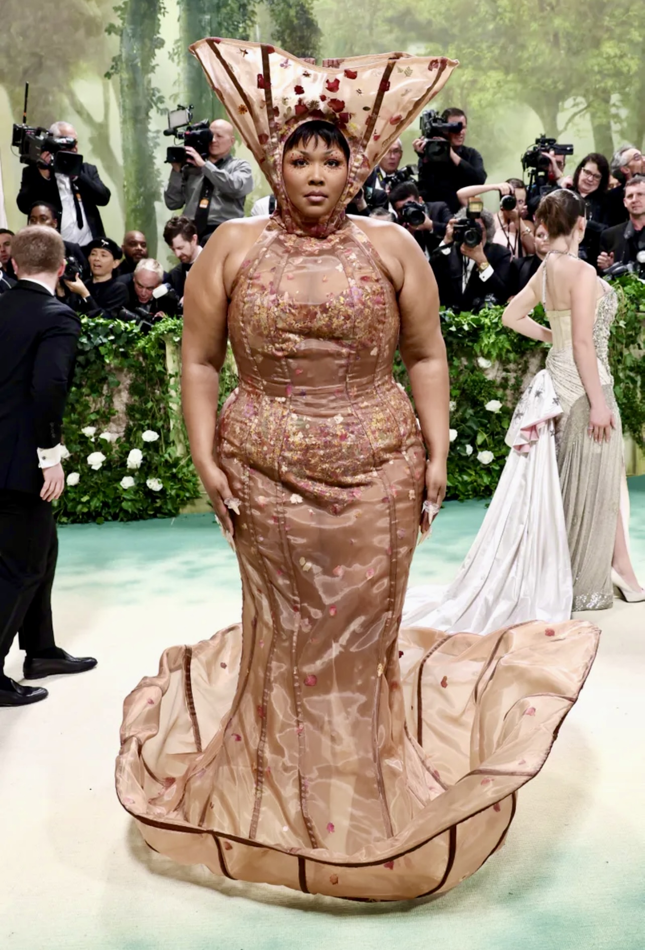 Los invitados subieron a la famosa escalinata del museo con trajes que hacían guiños al código de vestimenta del evento «El Jardín del Tiempo», y aquí puedes ver todos los looks de la Met Gala 2024.