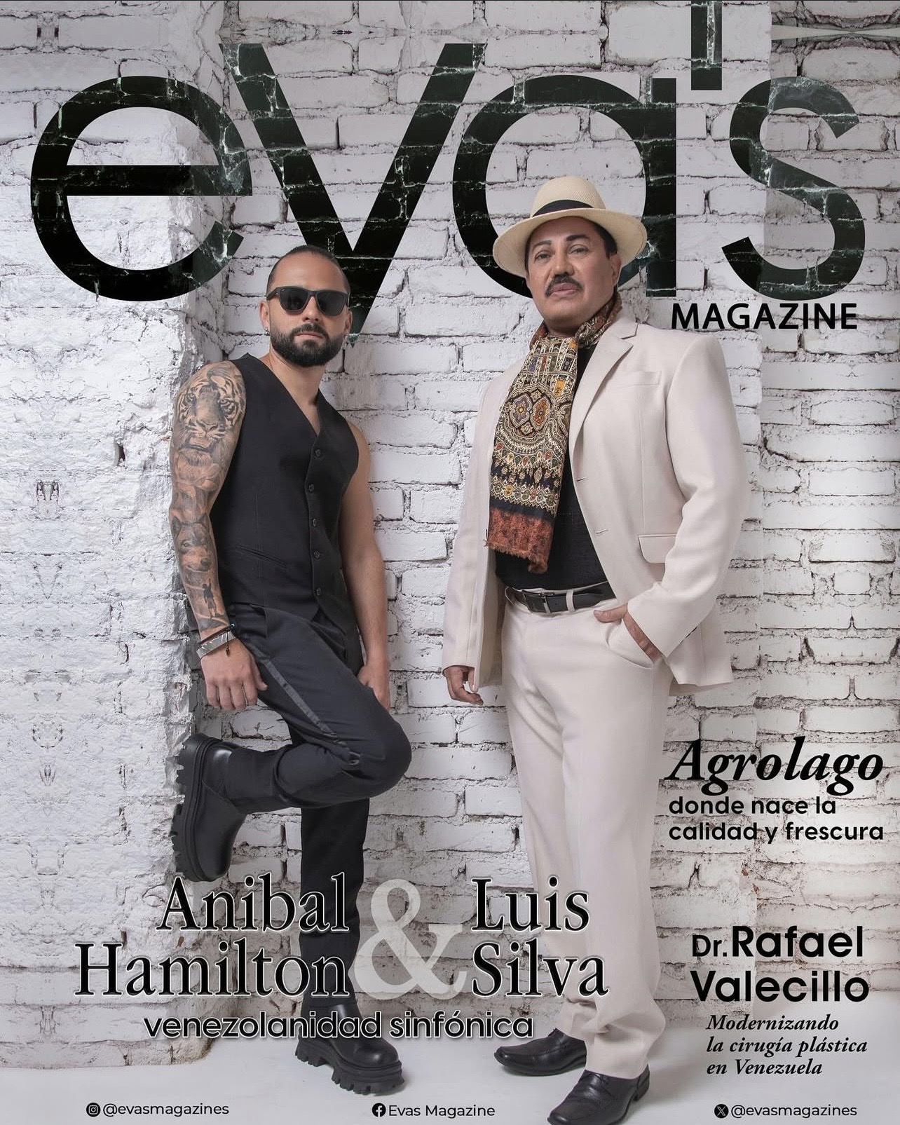 Las 4 ediciones trimestrales de 2025 de eVa’s fueron engalanadas con un petit committee de los más destacados influencers de la palestra nacional con la edición “Generación Viral” en la que Emely Barile, Gabriella Suárez, Valeria Núñez, Michi Paredes, Fernando Andrés, Eduardo Cantillo y Martín Albornoz fueron los protagonistas; luego tocó el turno a Oscar D’Leon y es que el “Sonero del Mundo” protagonizó un suntuoso editorial central para la revista celebrando los éxitos de su carrera; continuando con esta tendencia, eVa’s puso en portada al icono de la música llanera Luis Silva junto a los muy en tendencia AH Sinfónico, a propósito del lanzamiento de su reciente colaboración; ya para su última edición del año, se decantaron por la pareja dorada del espectáculo criollo Rosmeri Marval y Aran De Las Casas para protagonizar un editorial cargado de amor y show business.