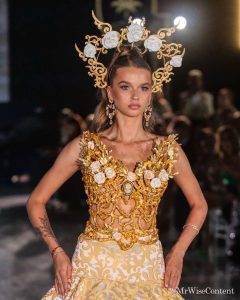 Como es tradición, la velada incluyó la presentación de la esperada colección de Isabel López, fundadora y diseñadora colombiana, compartiendo las piezas exclusivas de la portada principal con Fátima Bosch luciendo piezas de alta costura creada exclusivamente para esta editorial. Los diseños, parte de la colección Aureum, utilizan el oro como símbolo de transformación, fortaleza y triunfo, reflejando tanto la esencia de la colección como la narrativa personal de la protagonista.