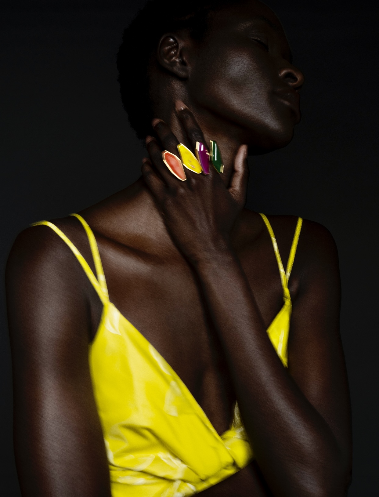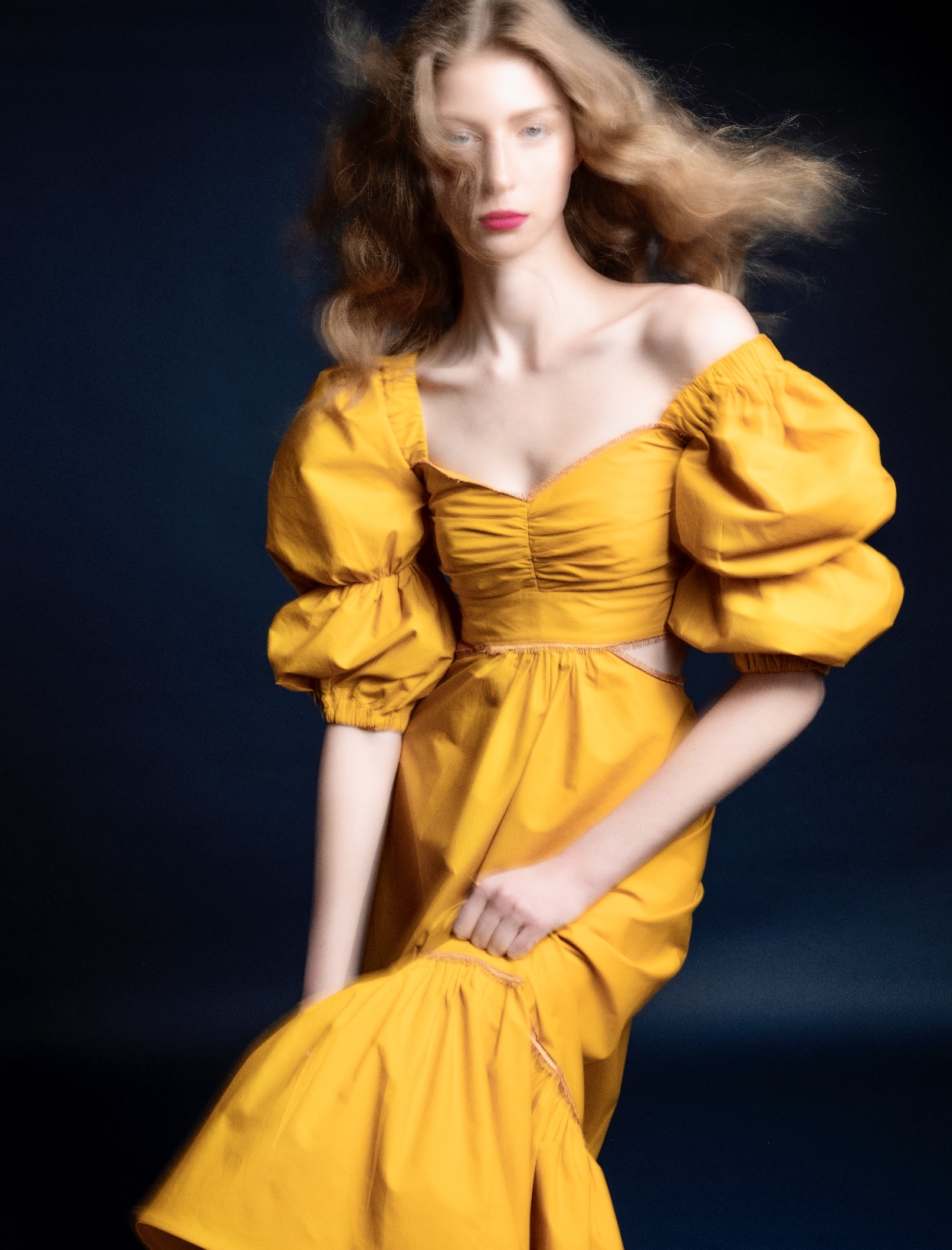 Para crear los textiles de esta colección, se jugaron con parámetros como la saturación, la exposición, el contraste y la nitidez, realzando tonalidades, distorsionando estampados, destacando texturas y pasando de color a B&W, como si se estuviera ajustando una fotografía digital usando la tecnología como herramienta creativa. El resultado permitió realzar aún más las siluetas de las prendas, logrando una nueva aproximación en cuanto volumen y movimiento.
